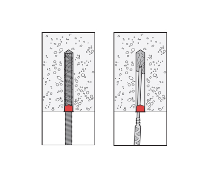 Adhesive retaining caps make overhead and horizontal installation easier by preventing the adhesive from running out of the hole. They also center the rod in the hole, making them ideal for applications where precise anchor placement is required. It may be necessary to provide support for the insert during cure time. Adhesive retaining caps are not designed to support the weight of the insert in overhead installations.
