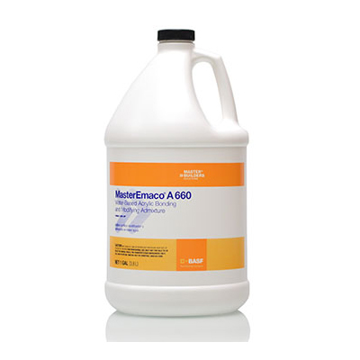 MasterEmaco A 660 is an acrylic-polymer emulsion mixed with Portland cement mortars, plasters, stucco, and concrete mixes to enhance their physical properties, adhesion to substrates, and durability.