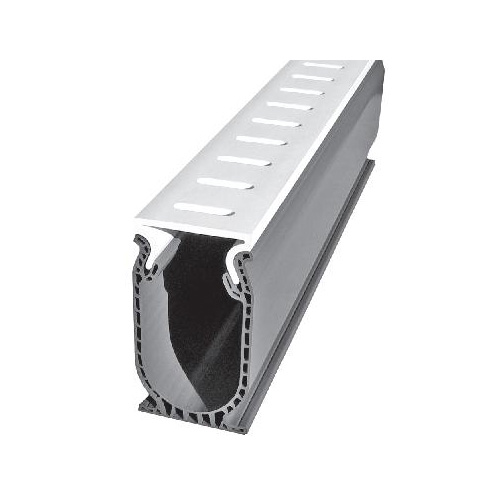 The Frontier Deck Drain is a removable top drain that features a double wall base and a snap in top. When installing this drain, the tops are staggered past the joints making the joints very rigid. Because Frontier Deck Drain tops are removable, this drain is easy to clean and the tops can be replaced if ever damaged. It is recommended that you drill and pin (3/8″ rebar) the base at 3 foot intervals to stabilize against any movement in the concrete slab.