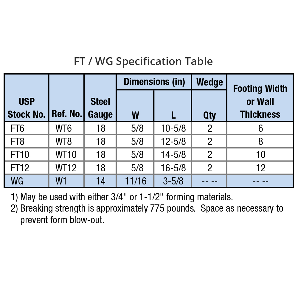 - Use (2) WG wedges for each tie. Insert wedge into inside slots for 1x nominal forms and outside slots for 2x nominal forms.