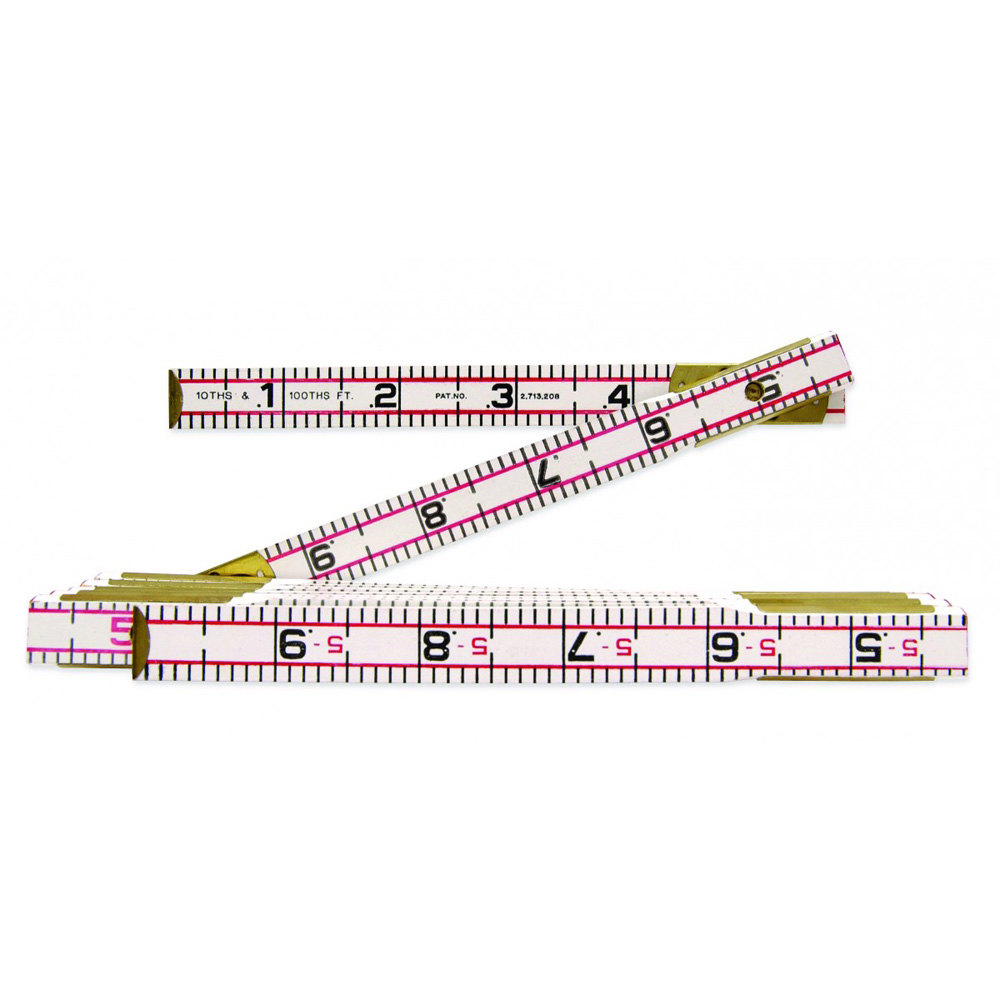 Red foot figures; regular outside markings in feet and inches. Decimal points on engineer’s scale prevent reading errors. Graduated in feet, 1/10ths and 1/100ths of feet.