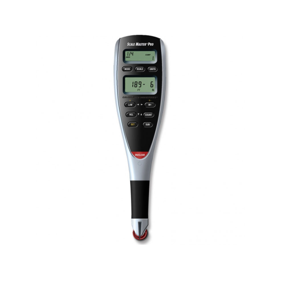 91 built in scales, 50 imperial (feet and inch), and 41 metric, for architectual, engineering, and map scaling. 8 custom scales, store and recall length, width and height values. Autocount value lets you know how many times a specific distance has been rolled. Perfect for counting studs. Provides all the most needed dimensional units. Built in memory, metric mode, subtract, and optional PC mode. Boxed. No. 6135: Length: 7.2”, Breadth: 1.6”, Thickness: 0.6”