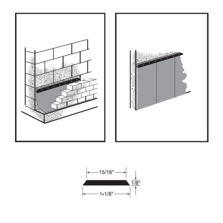 With the added flexibility provided by predrilled holes every 6″ (152.4 mm), cavity wall flashing materials can now be properly installed with confidence. The product’s unique, trapezoidal design provides a reservoir for caulks/mastics at the top termination.