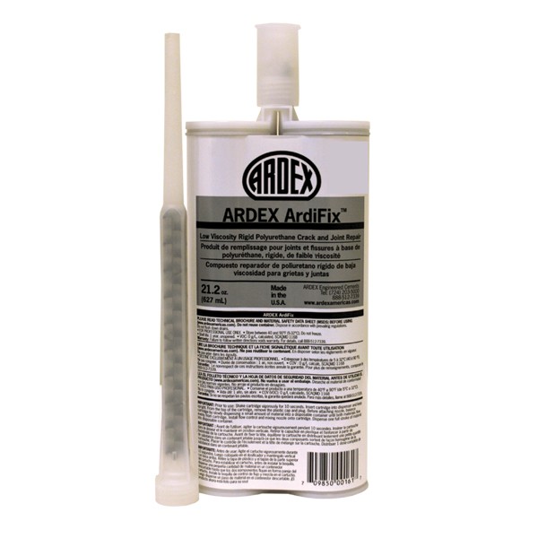 ARDEX ARDIFIX™ is a two-part polyurethane repair compound for cracks, control joints, spalls and pop-outs on interior or exterior applications. It is ideally suited to seal off cracks and saw-cuts prior to the installation of ARDEX MC™ Moisture Control Systems, Underlayments and Toppings. ARDEX ArdiFix is ultra fast setting allowing the installation to proceed within minutes of application. ARDEX ArdiFix is 100% solids for no shrinkage and cures to a rigid hardness. It also has a wide service temperature range of 0°F to 110°F (-17 to 43°C), making it suitable for applications from freezers to warehouses.