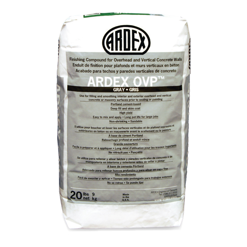 ARDEX OVP has a long pot life, making it ideal for large jobs, yet it hardens quickly and dries fast without shrinking, cracking or spalling. It is tougher and more durable than traditional gypsum and latex patches, and because it dries internally, it can be sealed or painted as soon as the