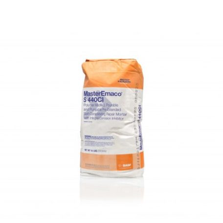 MasterEmaco S 440CI is a one-component, shrinkage-compensated, self-consolidating repair mortar that is polymer-modified and contains an integral corrosion inhibitor. It is designed for large volume repairs, including structural elements in applications from 3″ (76 mm) to full depth.