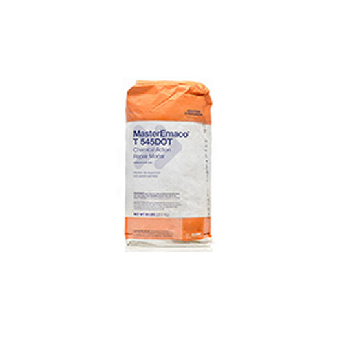 MasterEmaco T 545DOT is a one-component magnesium phosphate-based patching and repair mortar. This concrete repair and anchoring material has a minimum initial set time of 15 minutes and a minimum final set time of 25 minutes @ 70° F and takes rubber tire traffic in 45 minutes.