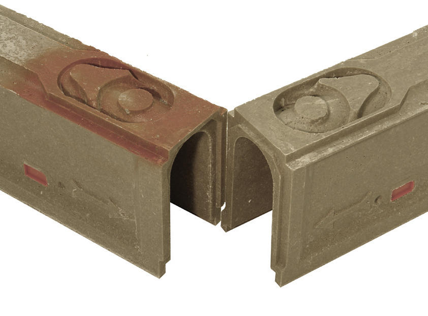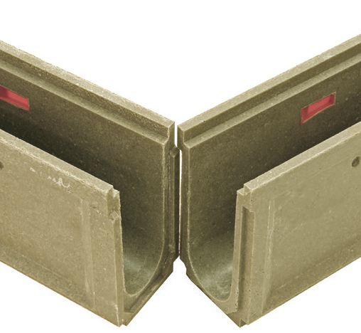 A series of specially modified channels that addresses the difficulties encountered when two sloping channels converge where a vertical outlet is required. For every outlet channel (050, 100, 150, 200, 250 and 300), a Gender Mender channel is molded with a female interlocking joint at the low point. This feature provides proper channel alignment and eliminates field fabrication for these center draining configurations