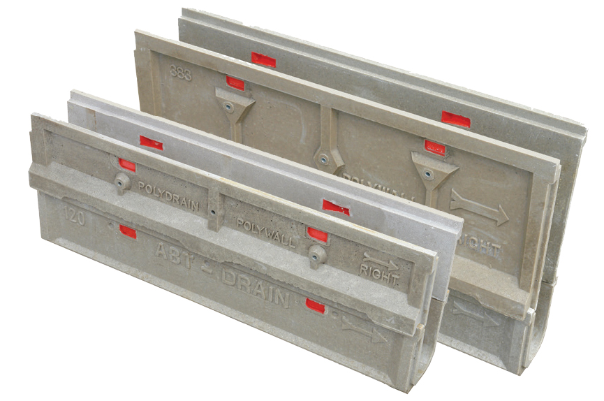 PolyDrain channels have interlocking tongue-andgroove joints that serve two important functions. First they aid in maintaining proper channel alignment during the pour. Second, they assist in securing channel connections to prevent fluid migration out of the system. ABT maintains a line of sealants that can be applied to channels when a sealed system is required.