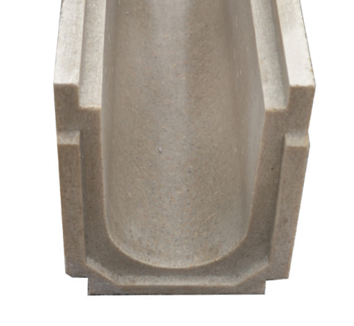 Standard PolyDrain channels have a builtin 0.6% slope with a smooth radius bottom and a narrow cross section. These features provide excellent hydraulic efficiency. Without any site slope, a 3.5 feet per second self-cleaning velocity is obtained when the channels are flowing full.