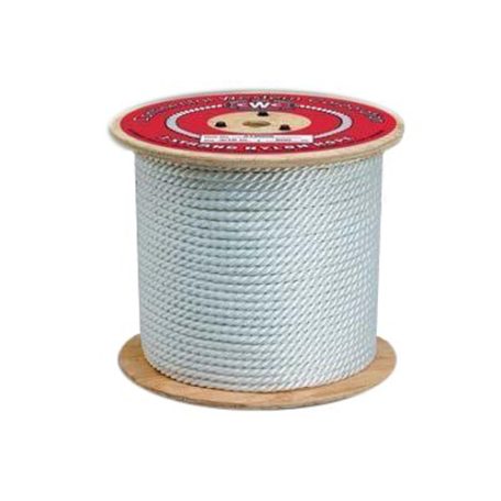 White 3-strand nylon rope. Effective, all-purpose shock absorbent rope. High strength and elasticity. Recommended for securing boats and cargo. Resistant to abrasion, sunlight, rot, mildew and many common chemicals.