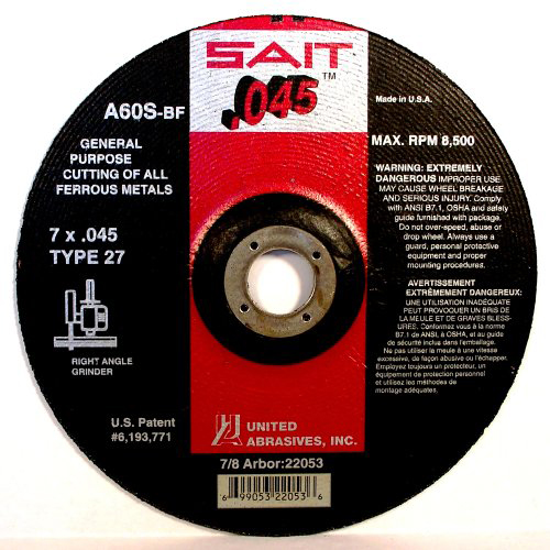 A60S – General Purpose. So unique it has a patent. Thin .045 width. Special aluminum oxide grain. Hard bond for extremely long life. Fast, burr-free cutting. Ferrous and/or non-ferrous metals (iron, steel, welds, etc.)