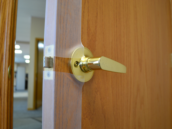 Available in 35″ x 150′ for front and backside door protection, and 6″ x 150′ for door edge and panic bar protection.
