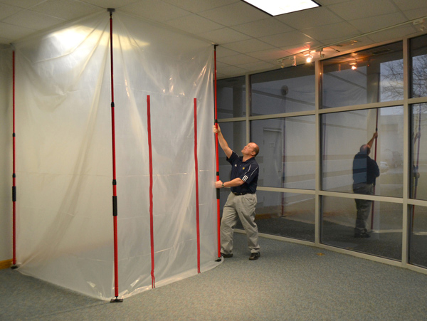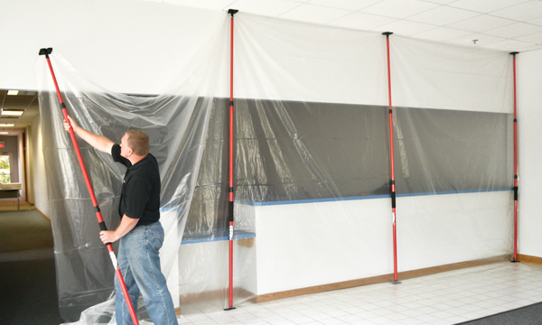 Dust Shield PRO, the state-of-the-art system that makes constructing temporary walls to control dust and heat loss, quick, simple and affordable! The locking head ensures that screening will not slip out and the dent resistant poles, crafted of a heavy gauge aluminum, are designed to stand up to the toughest conditions. Once done, the Dust Shield PRO pole compacts for easy storage. Available in 12 and 20 feet.