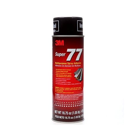 3M™ Super 77™ Multipurpose Spray Adhesive is an extremely versatile, fast-drying, and transparent spray adhesive that bonds a wide range of lightweight materials. Our fast, permanent bond provides fast results to keep projects moving ahead. The spray formula is easy to dispense and apply directly onto surfaces and materials where needed.