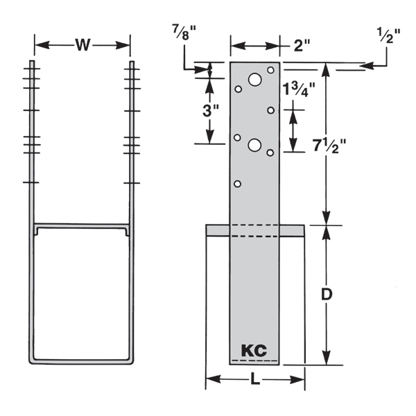 are similar to the HA heavy anchor (previous page), and provide builders with a medium-duty, low cost post anchor that can be embedded into concrete up to 7” to meet the needs of carports, patios, porches and breezeways. Moisture-barrier plate can be removed for added installation flexibility. The post can be nailed or bolted to meet code requirements.