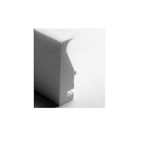 Pool Cover Form E is designed for use on gunite and vinyl liner pools. Pool Cover Form E provides a cantilever edge on swimming pools having encapsulated automatic pool covers. The foam protrusion above the tapes is designed to fit inside the face of the encapsulation. This form, when properly positioned, prevents concrete contamination into the automatic pool cover track.
