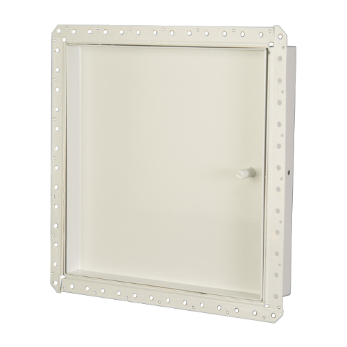 The face of the door on the RDW is recessed to receive a panel of drywall to provide a dry wall finish on the door to match texture of surrounding drywall. The door frame includes a drywall bead so that drywall cement can be applied to conceal flange.