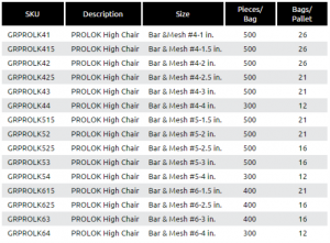 With its patented locking head design, the PROLOK High Chair saves contractors time. It raises rebar or wire mesh, tightly secures a rebar intersection without the use of tie wire or bar ties, and is stackable.
