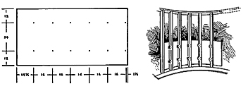 MCS recommends a system for radius forming involving “A” brackets, snapties, and-to avoid filler strips-trimmed interior plywood.