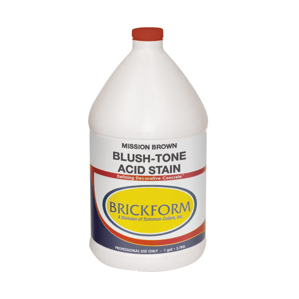 Brickform Blush-Tone Acid Stain is a reactive stain, meaning it penetrates deep into and chemically reacts with the concrete, forming durable color that will not chip, fade, or wear. This makes it perfect for high traffic areas and polished concrete floors. A near infinite number of looks can be achieved by using multiple colors in any number of patterns or designs. A skilled contractor can even use outside materials and differing dilution rates to create one of a kind designs that will make your home or business the envy of all who see it. Blush-Tone Acid Stain forms deep, rich colors, especially when paired with Brickform Premium Sealers. It works well indoors and out as well as on flat and vertical concrete surfaces. View the Blush-Tone Acid Stain color card for available colors. Keep in mind that the final color may not exactly match the color card.