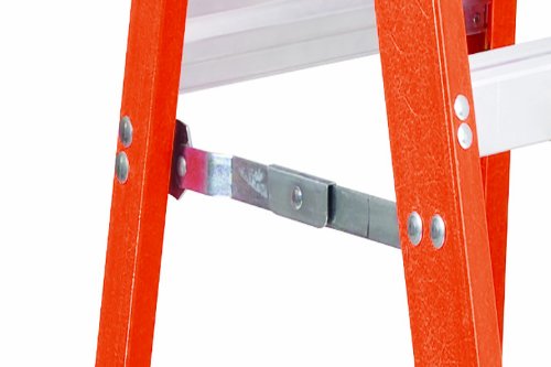 Heavy-duty industrial ladder has a 300 lbs. duty rating and is made from non-conductive fiberglass. Slip-resistant extra-grip feet provide the most contact with floor or ground surface. Internal pinch-resistant spreader braces mean this heavy-duty step ladder can be slid into and out of storage without damaging braces or getting hooked on to other equipment. Double-rivet step construction, slip-resistant steps and wide back braces every foot for increased stability and durability.