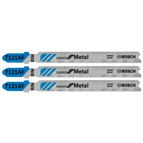 Innovative Bosch “Speed for Metal” blades offer the fastest cuts and long life in thick or thin metal pipes and metal profiles. A narrow, bi-metal body with strong, aggressive teeth removes stock quickly and leaves a good finish in straight and gently curved cuts. T-shank design for maximum grip and stability that fits more than 90% of all current jig saw makes and models.