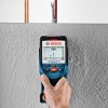 The future of detection technology – Precision of the highest order. Give yourself an advantage. Accurate detection of all materials including plastic due to state-of-the-art ultra wideband radar sensor system. Detection accurate to the millimetre due to ultra wideband radar sensor system. Objects are indicated by acoustic and visual signal. Maximum measuring depth of up to 15 cm. Digital display of material properties and permitted drilling depth. Features: Detects ferrous and non-ferrous metals, electrical cables, wooden beams, plastics such as floor and wall heating pipes Intuitive user interface using multilingual menu with specific modes for different applications Easy-to-read, large, illuminated display Robust design for tough demands on the construction site: dust and splash protection of IP54, also remains fully functional after being dropped from a height of up to 1 m Requires no calibration Specifications: Max. detection depth:150 mm Measuring accuracy of object centre: ± 5 mm Measuring accuracy of indicated permitted drilling depth: ± 5 mm Detectable materials: Metal, power cables,wood, plastic Dust and splash protection: IP54 Power supply: 4 x 1.5 V LR6 (AA) Number of possible measurements : 1,000 (non-rechargeable batteries), 1,500 (rechargeable batteries, 2,500 mAh) Dimensions : 220 x 97 x 120 mm Weight : 0.7 kg