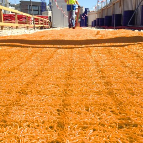 All-Terrain mat provides an extremely durable safe traffic zone on loose and unprepared ground on construction sites for use by workers, contractors, and their clients.