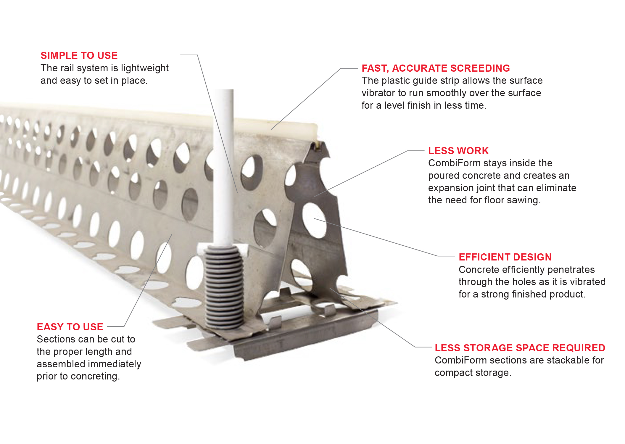 Locking clips are included with each 3,5 m CombiForm section to support normal beam loads.